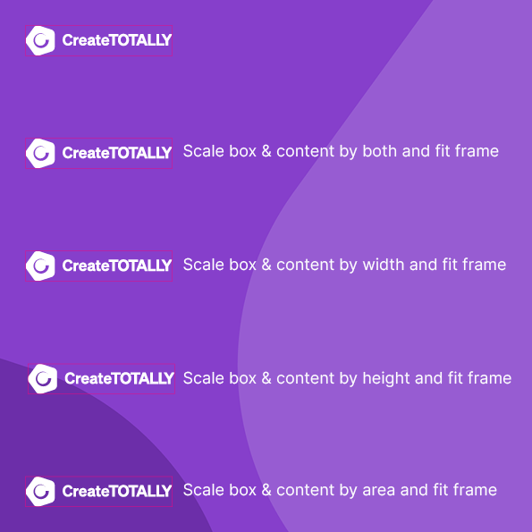 - Resizes content to fit a frame and allows the content proportions to be changed. The frame will not change, but the content may appear to be stretched if the content and the frame have different proportions.